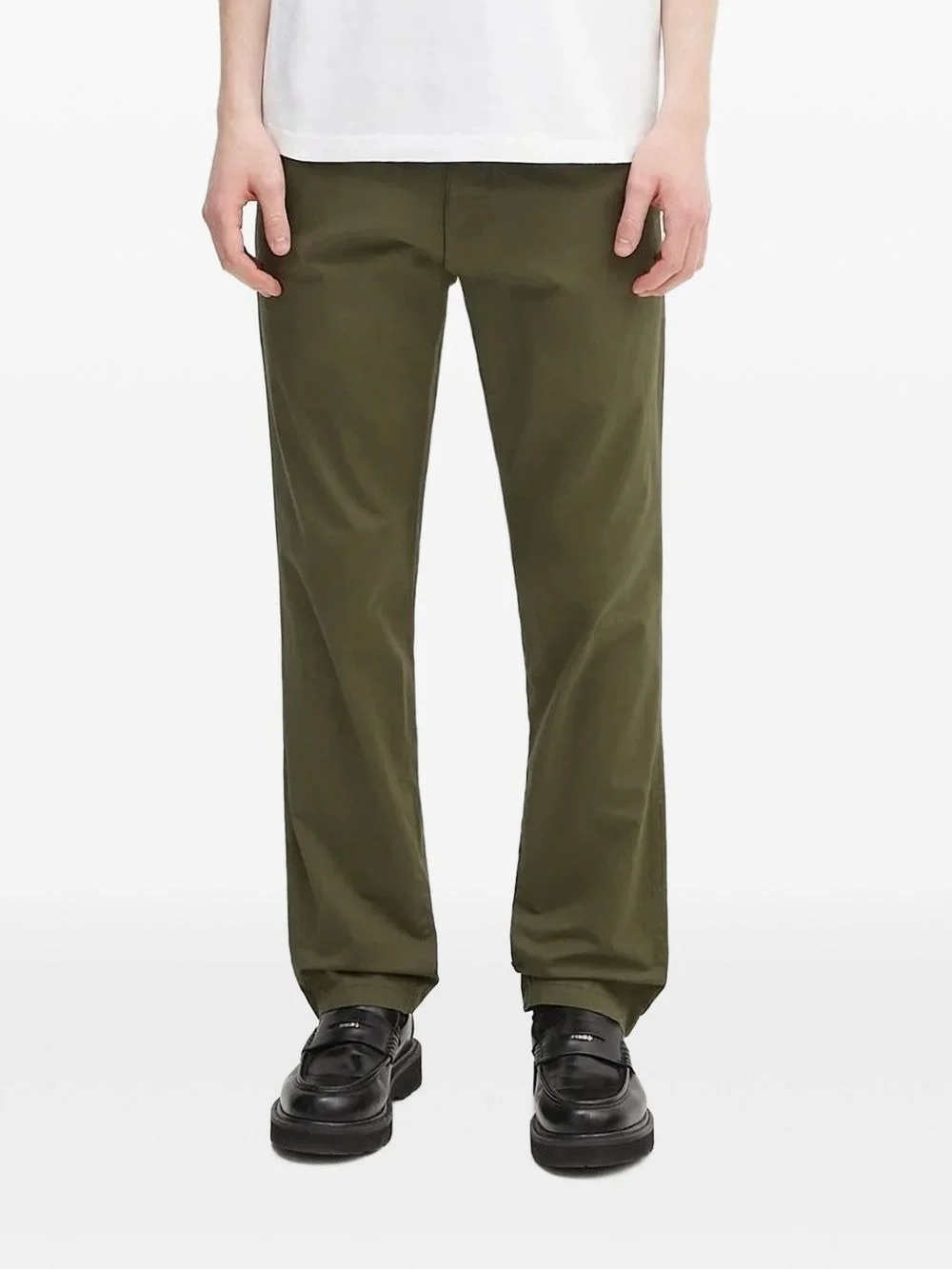 logo-patch straight-leg trousers Highlights - Green - Straight leg - Flat front - Square label Imported Composition Outer: Cotton 98%, Elastane 2% Lining: Polyester 65%, Cotton 35% Washing instructions Read Manufacturer Guidelines