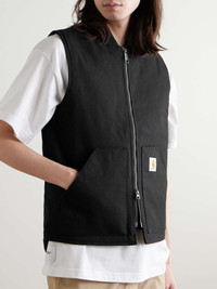 Carhartt WIP's designs are heavily informed by its workwear heritage. Made from durable cotton-canvas, this gilet has large utility pockets and a roomy fit that's perfect for layering. Size & Fit - Model wears a size larger to achieve a looser fit - Mid-weight, non-stretchy fabric - Model is shown wearing a M - Model measures: chest 36"/ 92cm, height 6'0"/ 183cm Details & Care - Black cotton-canvas - Two-way zip fastening - 100% cotton - Machine wash