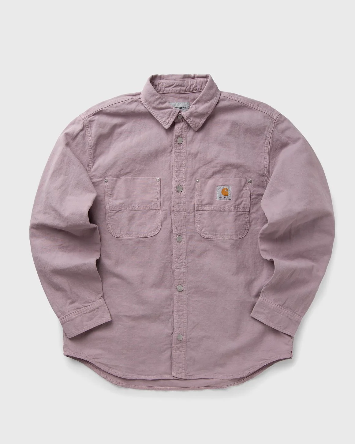 The Walter Shirt Jacket by Carhartt WIP is unlined and made from a cotton and linen mix. The chest pockets feature metal rivets and a woven square label rounds off the design. - Button placket - Chest pockets with metal rivets - Square label Article Number: I033578-2ZV.GD Gender: Men Color: PINK FOG Material: 58% Cotton, 42% Linen