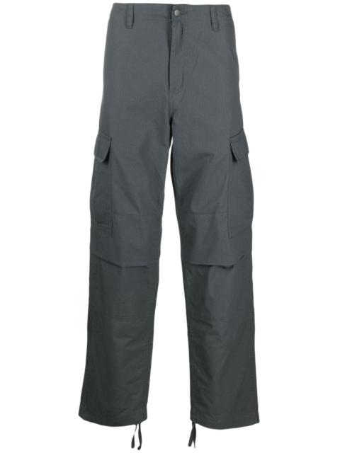 low-rise ripstop cargo trousers Highlights - Slate grey - Cotton - Ripstop texture - Logo patch to the rear - Low-rise - Belt loops - Front button and zip fastening - Straight leg - Two side slit pockets - Two side cargo pockets - Two rear flap pockets - Drawstring cuffs Imported Composition Lining: Cotton 50%, Polyester 50% Outer: Cotton 100% SIZE & FIT Model measurements Height 6 ft 2 in(1.87 m) Bust/Chest 35.4 in(90 cm) Hips 36.2 in(92 cm) Waist 27.2 in(69 cm) FittingInformation Designed for a straight-leg, allowing for an unrestricted and comfortable fit over the leg Made from a midweight non-stretch fabric, this piece offers minimal elasticity when worn This piece fits true to size – take your usual size