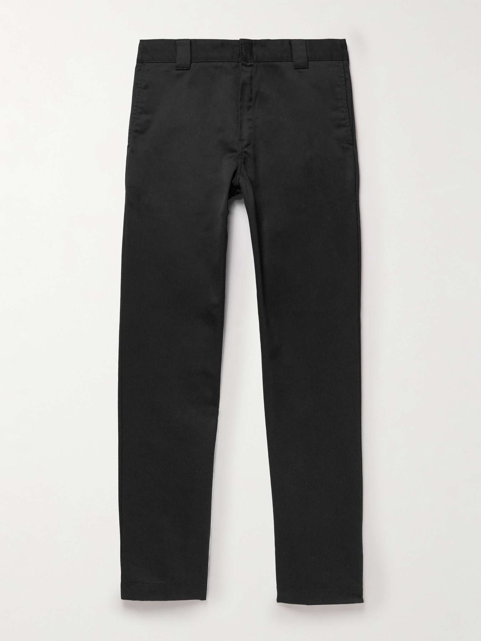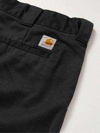 Carhartt WIP's workwear looks cool and fits comfortably, even if you don't plan on getting your hands dirty. These 'Master' trousers are cut for a roomy tapered fit from rigid twill spun with cotton for breathability. Wear them with a hoodie and sneakers at the weekend. Size & Fit - Fits true to size. Take your normal size - Tapered leg, mid-rise style - Mid-weight, non-stretchy fabric - Model wears a 30 - Model measures: waist size 30, height 6'1"/ 185cm Details & Care - Black twill - Hook and zip fastening - 65% polyester, 35% cotton - Machine wash - This item has been imported
