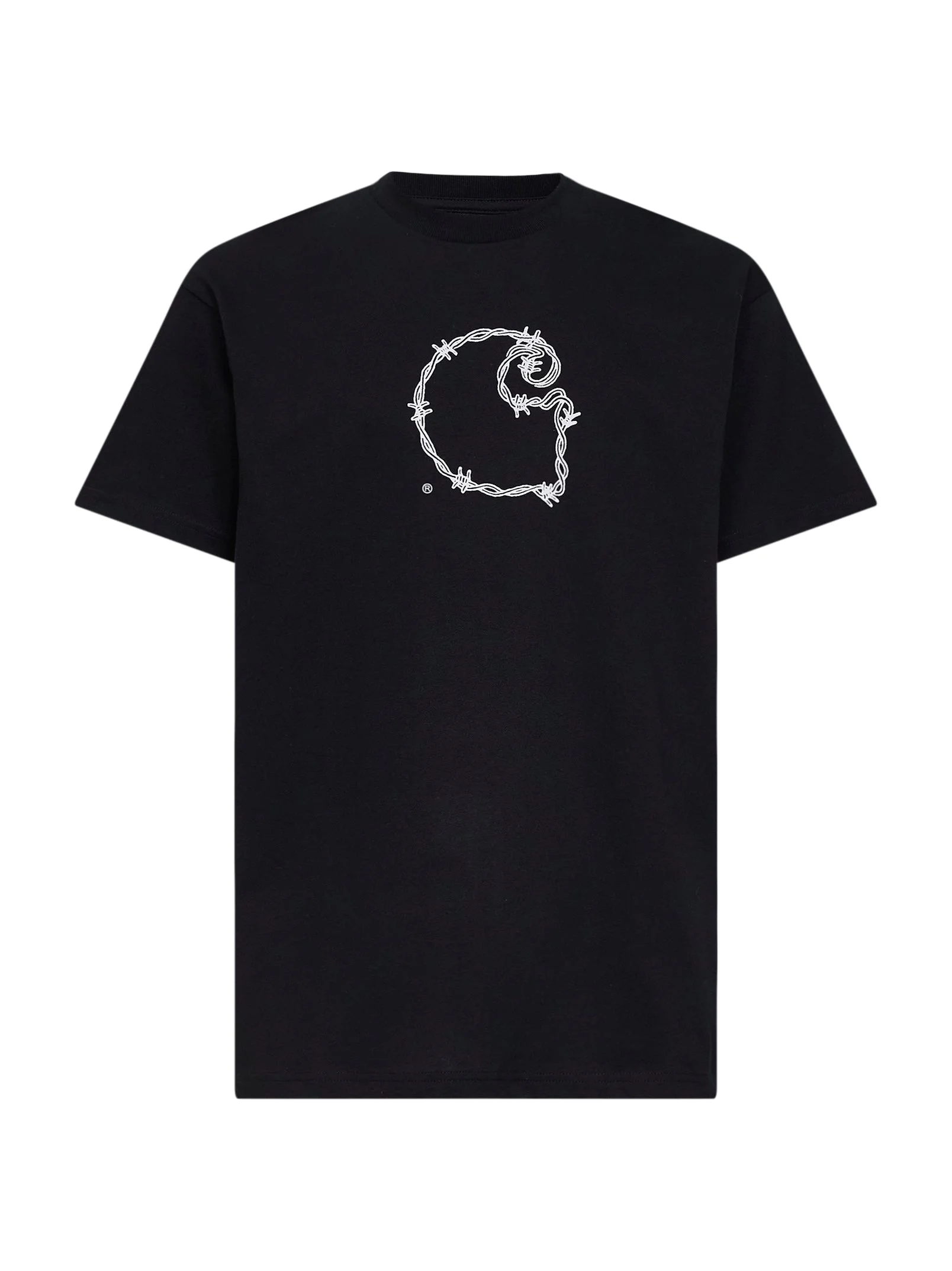 - Ribbed crewneck - Short sleeves - Contrasting c-shaped graphic print at chest - Straight hem - Midweight organic cotton jersey design - Loose fit - Black color - 100% cotton - Made in germany Natural (Veg): Cotton100 % Made in: Germania Season: P26 I036237-89XX