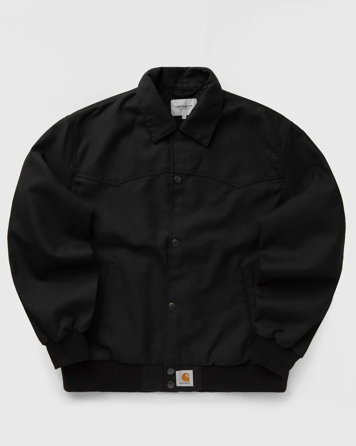 The Ray Jacket from Carhartt WIP is made from a polyester and wool twill with poplin lining. The style has ribbed cuffs, triple seams and is fastened with buttons. A woven square label rounds off the design. - Chest pocket on the inside - Triple seams - Ribbed cuffs - Buttons with logos - Square label Article Number: I035622-89.01 Gender: Men Color: black Material: 55% Polyester, 45% Wool
