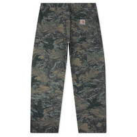 The Single Knee Pant from Carhartt WIP is inspired by classic workwear aesthetics. Made from a blend of organic cotton canvas, the pant softens with wear. Adorned in an all-over camouflage print, the silhouette is designed to have a relaxed, straight-leg fit. Practical details include front and back pockets, tool pockets, and a hammer loop. The signature Carhartt square label completes the look with a branded touch. - 100% Organic Cotton Canvas - Relaxed fit - Straight leg - Zip-fly - Triple stitched - Front and rear pockets - Tool pockets and hammer loop - Carhartt square label - Style No: I031497-38T06