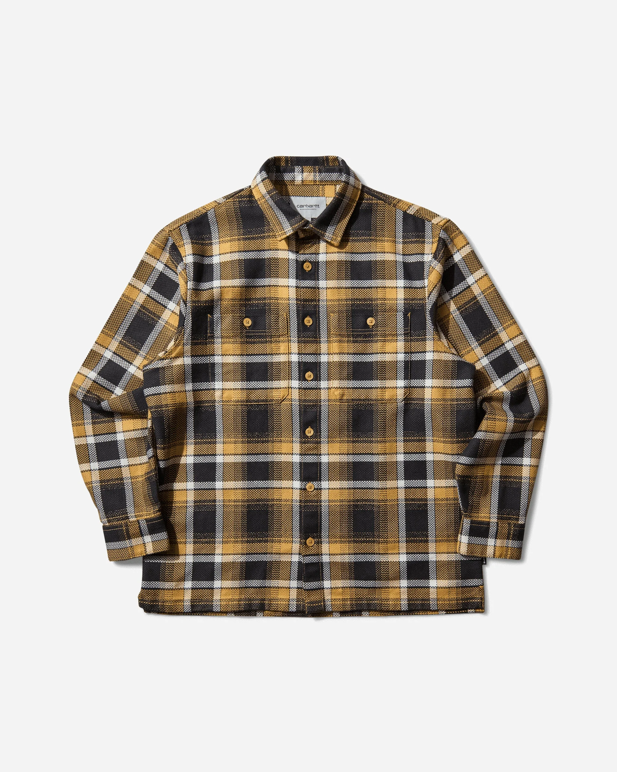 Carhartt WIP Vaughn Longsleeve Shirt Vaughn Check / Dijon The L/S Vaughn Shirt is made in a loose fit from heavyweight herringbone cotton featuring an allover check pattern. It is also detailed with two buttoned chest pockets. A flag label appears on the side. A woven Square Label completes the design. - 100% Cotton - Loose Fit - Yarn-Dyed - Garment Washed - Classic Collar - Button Closure - Two Chest Pockets - Single-Button Cuffs - Straight Hem - Style Code: I035325 35UXX