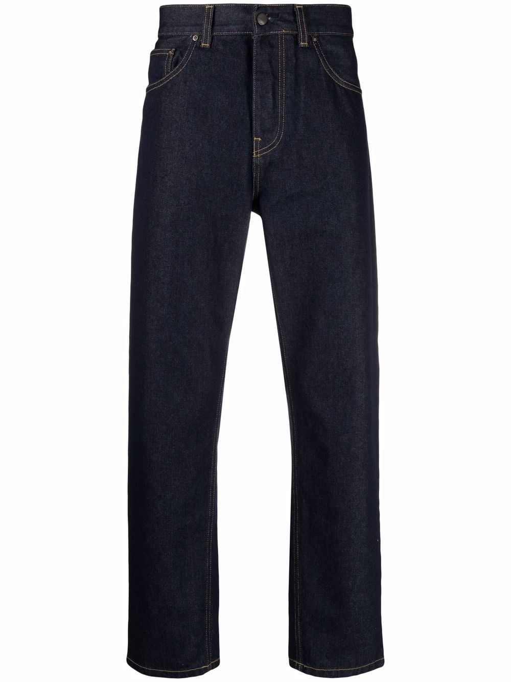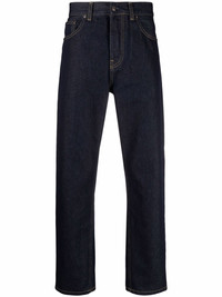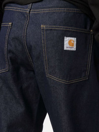 mid-rise jeans Blue organic cotton mid-rise jeans from CARHARTT WIP featuring mid-rise, front button and zip fastening, classic five pockets, logo patch to the rear and straight leg. POSITIVELY CONSCIOUS: This Conscious product contains organic cotton where the cultivation and manufacturing process restricts the use of chemicals, eliminates pesticides or artificial fertilisers and incorporates methods that respect biodiversity, improve soil quality, and reduce water consumption.. Imported Composition Lining: Polyester 65%, Cotton 35% Outer: Organic Cotton 100% SIZE & FIT Model measurements Height 6 ft 1 in(1.86 m) Bust/Chest 35.4 in(90 cm) Hips 35.4 in(90 cm) Waist 29.9 in(76 cm) FittingInformation This piece fits true to size. We recommend you get your regular size Regular fit Made with a mid-weight non-stretch fabric