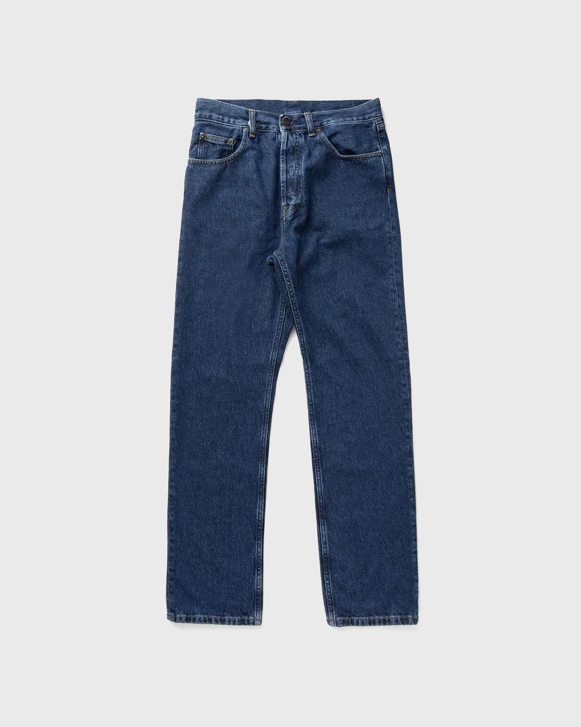 The Nolan Pant by Carhartt WIP is a five-pocket style made from a heavy cotton denim. The pants have a wide, straight fit with a normal waistband height. A woven square label on the back pocket rounds off the design. - Relaxed straight fit - Normal waistband height - Saddle seam - Button fastening - Square label Article Number: I033006-01.06 Gender: Men Color: Blue stone washed Material: 100% Cotton