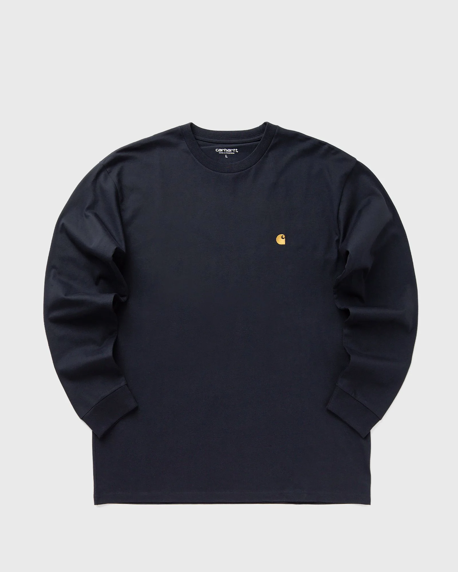 The L/S Chase T-shirt from Carhartt Wip is made from a combed cotton jersey. It has a loose fit and is rounded off with an embroidered logo on the chest. - Round neckline - Long sleeves - Embroidered logo Article number: I026392-00H.XX Gender: men Color: Dark Navy / Gold Material: 100% Cotton