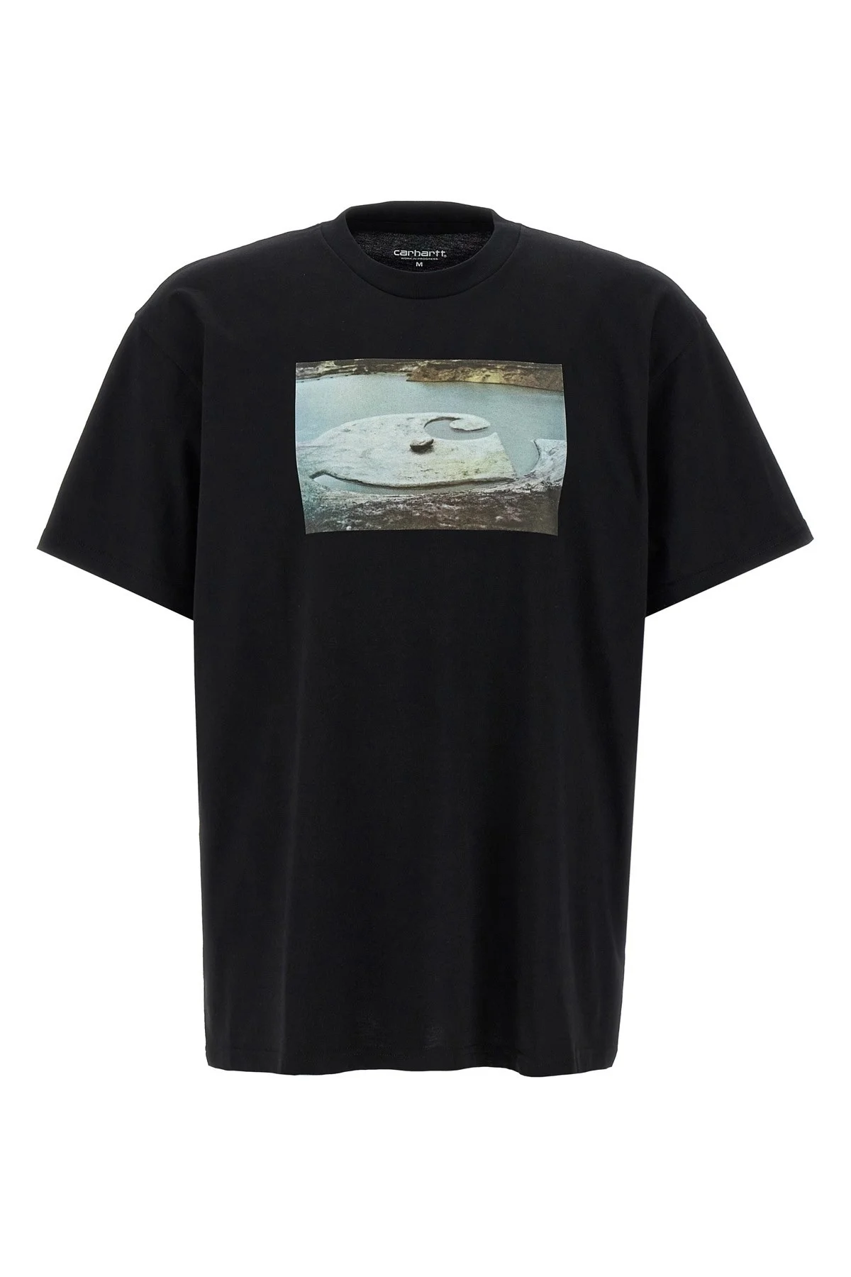 cod. I03465289XX 'Muddy Water' light cotton jersey T-shirt with front print, crew neck, short sleeves with dropped shoulders. SUSTAINABLE: This product is made of organic cotton. Color: Black Size & Fit: Loose fit Composition: 100% organic cotton Made in: bangladesh