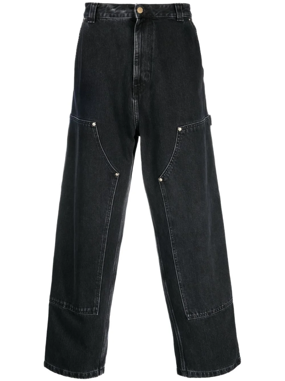 Nash double-knee wide-leg jeans Highlights - Black - Cotton - Denim - Logo patch to the rear - Front button and zip fastening - Two side inset pockets - Two rear patch pockets - Two side patch pockets - Belt loops - Wide leg - Mid-rise - Straight hem Imported Composition Outer: Cotton 100% Lining: Polyester 65%, Cotton 35% SIZE & FIT Model measurements Height 6 ft 2 in(1.87 m) Bust/Chest 35.82 in(91 cm) Hips 35.43 in(90 cm) Waist 27.95 in(71 cm) Measurement FRONT RISE 12.99 in(33 cm) INSIDE LEG 28.74 in(73 cm) WAIST 31.49 in(80 cm) FittingInformation Designed with a wide leg, these jeans offer a loose and roomy fit Sturdy and hard-wearing, this denim piece offers no stretch This piece fits large – take one size down