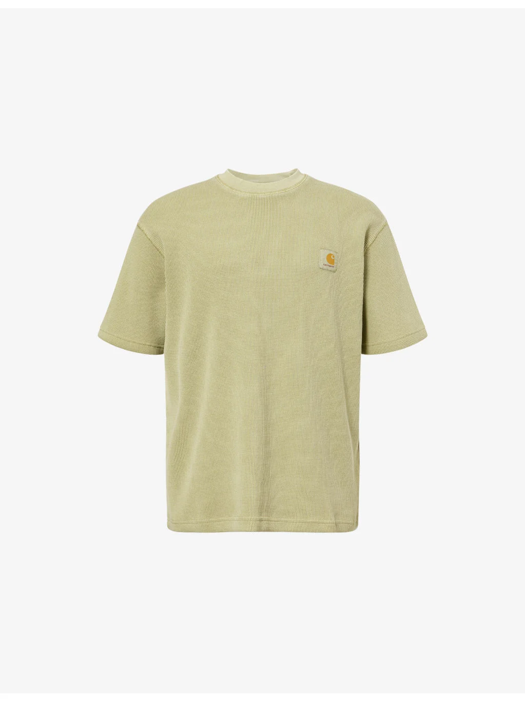 PRODUCT DETAILS - Carhartt WIP cotton t-shirt - 100% cotton - Relaxed fit, ribbed crew neck, short sleeves, brand patch at chest, all-over waffle knit - Machine wash at 30°C - Model is 6ft 2in/1.88m and wears a size medium - Midweight, stretchy Ref: R04560693