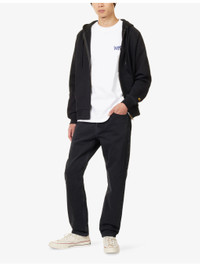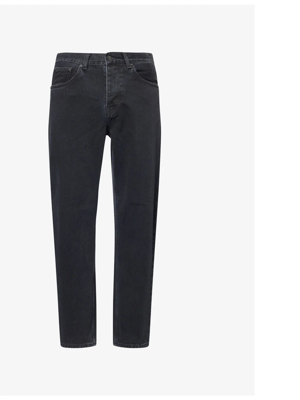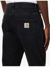 PRODUCT DETAILS - Carhartt WIP organic denim jeans - 100% organic cotton; pocketlining 65% polyester, 35% cotton - Exposed button and concealed zip-fly fastening at front - Regular fit, mid-rise, straight leg, belt loops, branded hardware, five pockets, contrast stitching, branded patch at back, faded wash, partially lined - Machine wash mild - Size UK 32: rise 11.5 in / 29.5 cm, inside leg 28.5 in / 73 cm, leg opening 14 in / 36 cm - Model is 6 ft 2 in/1.88 m and wears a size UK 32 - Midweight, non-stretch