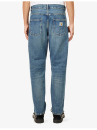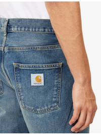 PRODUCT DETAILS - Carhartt WIP denim jeans - 100% cotton - Button and zip-fly fastening at front - Relaxed fit, tapered leg, belt loops classic five pockets, brand patch at back, faded wash, whiskering detail - Machine wash at 40°C - Size UK 30: rise 11in / 28cm, inside leg 29.9in / 76cm, leg opening 13.3in / 34cm - Model is 6ft 2in/1.88m and wears a size UK 30 - Midweight, non-stretch Ref: R04553674