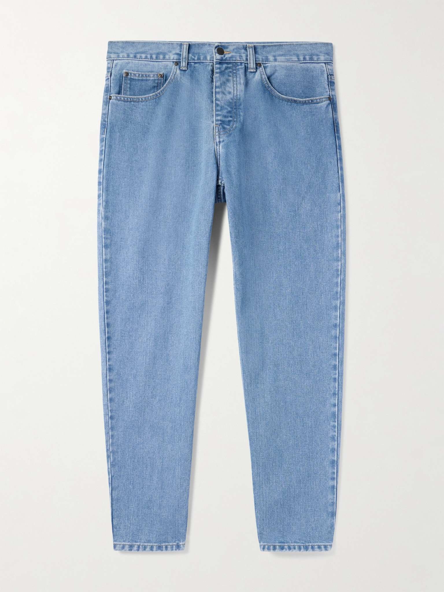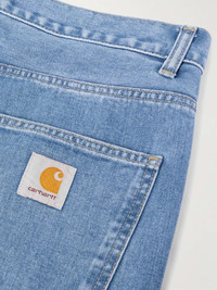 Carhartt WIP's wardrobe essentials are inspired by classic work uniforms, so they'll stand up to the test of everyday wear. These 'Newel' jeans are cut from premium cotton-denim that'll hold their neat tapered shape. They're appliqued with the brand's logo on the back pocket. Size & Fit - Fits true to size. Take your normal size - Tapered leg, low-crotch style - Mid-weight, non-stretchy fabric - UK/US sizing Details & Care - Light-blue denim - Button fastenings - 100% cotton - Machine wash