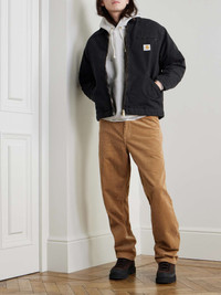 Carhartt WIP's 'OG Detroit' jacket is a classic piece of workwear. Cut from durable organic cotton-canvas, it's framed by a contrasting corduroy collar and has a trio of welt pockets. Note the signature patch at the chest. Size & Fit - Those with broad shoulders may wish to take the next size up - Weighted, non-stretchy fabric - Model is shown wearing a M - S/M/L sizing Details & Care - Black organic cotton-canvas and corduroy - Zip fastening - 100% organic cotton; padding: 100% polyester; lining1: 100% polyester; lining2: 65% polyester, 35% cotton