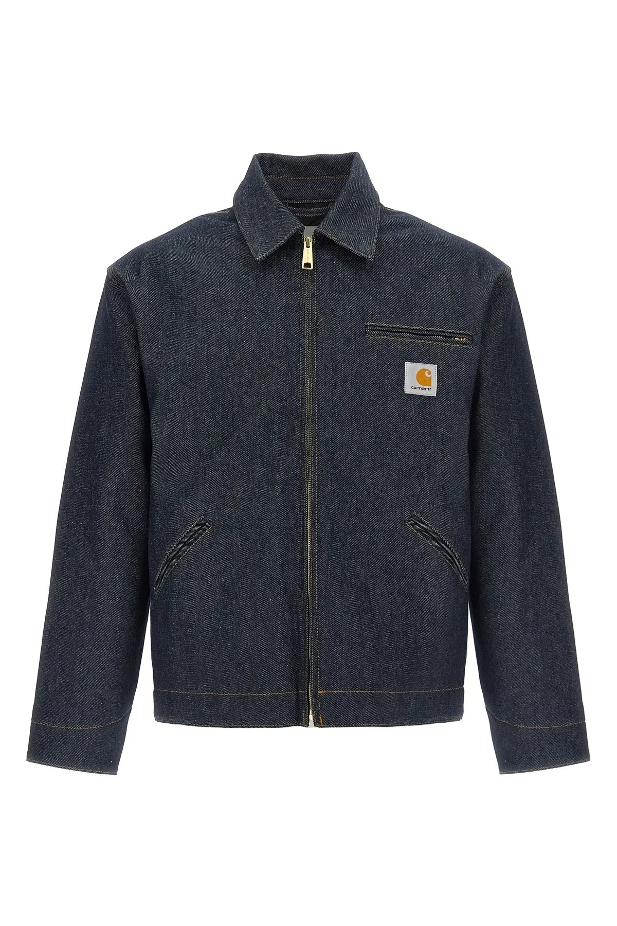 cod. I0362590101 'OG Detroit' heavy cotton denim jacket with nylon matelasse lining, contrast stitching, shirt collar, logo patch and front zip closure, pockets, long sleeves with adjustable cuffs and dropped shoulders. Color: Blue Size & Fit: Loose original fit Composition: 100% recycled cotton Made in: Tunisia PROMO CODE NOT APPLICABLE