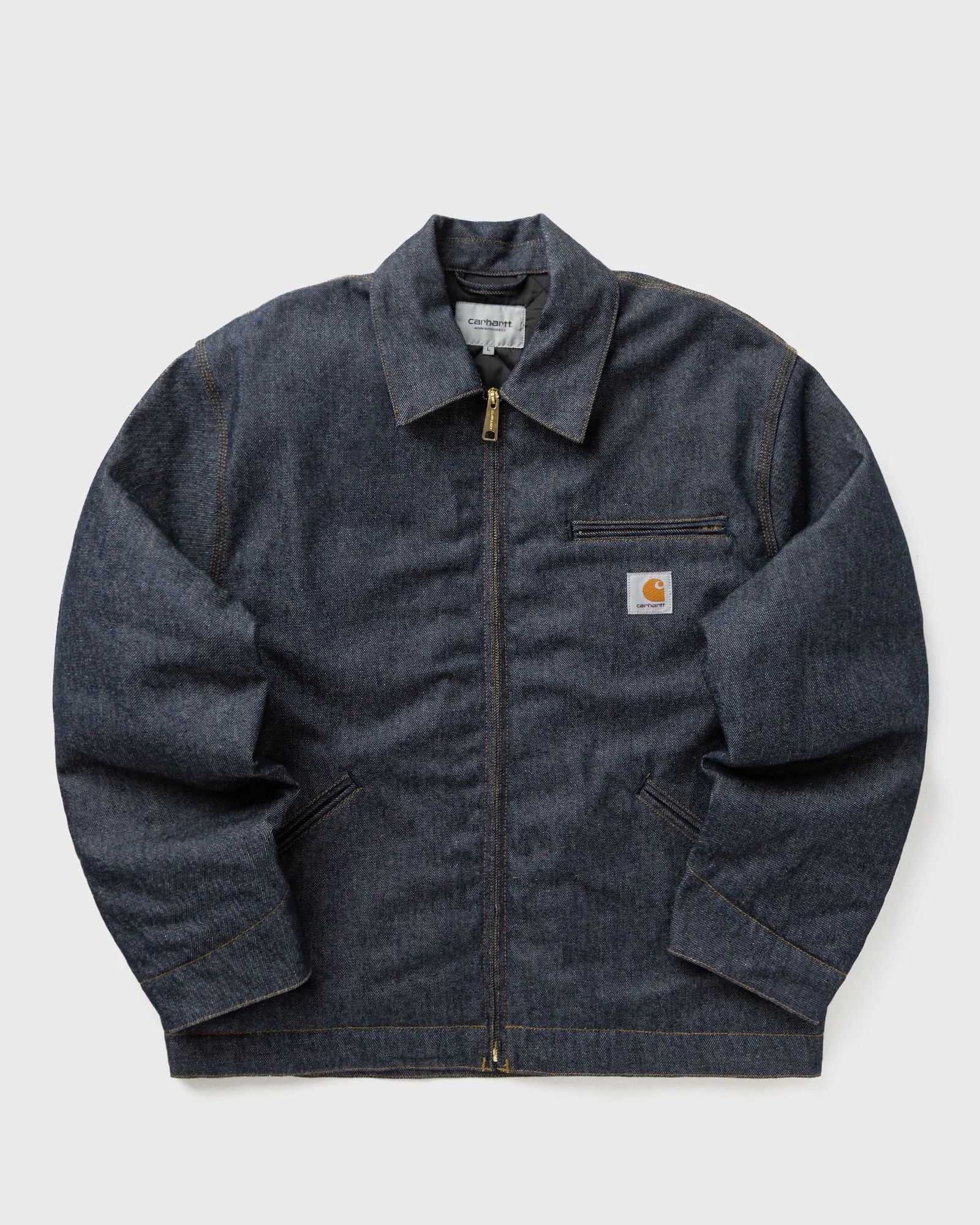 The OG Detroit Jacket by Carhartt WIP has an original loose fit and is made from heavy cotton denim with quilted lining. A zipper, two side pockets, and a chest pocket provide functional details. A woven square label completes the design. - Front zipper - Side pockets - Chest pocket - Square label Article number: I036259-01.01 Gender: men Color: Blue Material: Full: 100% Cotton