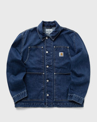 The OG Double Front Jacket by Carhartt WIP has the original loose fit, is unlined and made from a heavy cotton denim. The style was inspired by the Double Knee Pant and is equipped with double-layered pockets on the front, which are reinforced with bar seams and metal rivets in frequently used areas. A woven square label completes the design. - Unlined - Triple seams - Buttons - Double-layered pockets on the front - Bar-tacked seams and rivets in high-wear areas - Adjustable cuffs and hem - Square label Article number: I034866-01.06 Gender: men Color: Blue stone washed Material: 100% Cotton