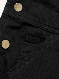 "Some garments are archetypally Carhartt WIP. Perhaps no garment encapsulates that quite as well as our Bib Overall", explains the label of its signature model, which has been in production since the late 1800s. Made from hard-wearing 12oz. 'Dearborn' cotton-canvas, this black version is reinforced with bartack stitching at its stress points and has a multitude of pockets, plus a hammer loop. Size & Fit - Fits true to size. Take your normal size - Designed for a relaxed fit with a relaxed-straight leg - Adjustable shoulder straps - Mid-weight, non-stretchy denim - UK/US waist sizing Details & Care - Black cotton-canvas - Button fastenings - 100% cotton - Machine wash