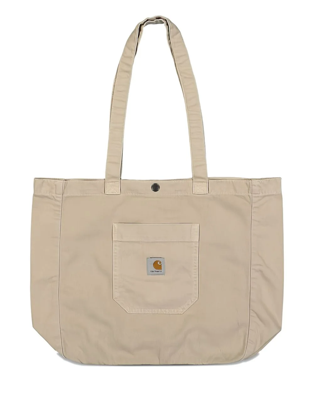 pocket shoulder bag Highlights - Beige - Cotton - Top flat handles - Front pocket - Button patch fastening - Internal zip pocket Imported Composition Outer: Cotton 100% SIZE & FIT Measurement DEPTH 5.11 in(13 cm) HEIGHT 15.74 in(40 cm) WIDTH 14.96 in(38 cm)