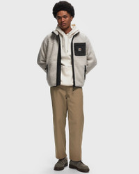 The Carhartt WIP Prentis Liner is made from a heavyweight 10.03 oz fleece and features contrast nylon taffeta detailing and a single chest pocket embellished with the Carhartt WIP label. A mesh lining provides breathability. - Front closure - Zippered side pockets and chest pocket - Mesh lining - Nylon taffeta details Article Number: I025120-2DU.XX Gender: Men Color: MOONBEAM / BLACK Material: 100% Polyester