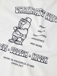 Carhartt WIP is far more than workwear – it has its very own coffee shop in Kings Cross, London. This T-shirt is printed with a concept for a brand bodega, with a bold spell-out at the back. It's made from cotton-jersey and cut in a relaxed shape, with slightly dropped shoulders to enhance the fit. Size & Fit - Fits true to size. Take your normal size - Designed for a regular fit - Mid-weight, stretchy fabric - Model is shown wearing a M - Model measures: chest 38"/ 96cm, height 6'2"/ 188cm Details & Care - White and navy cotton-jersey - 100% cotton - Machine wash