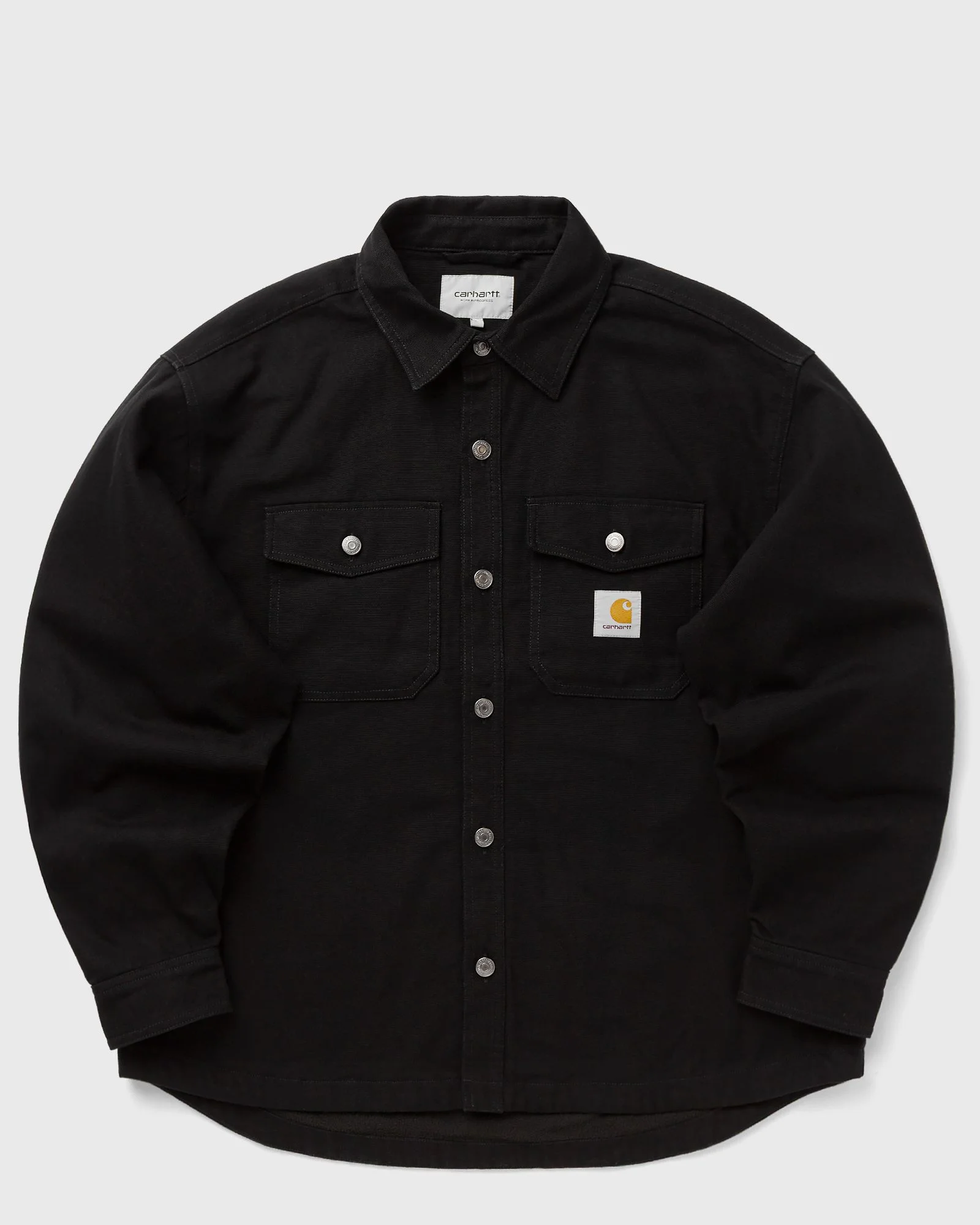 The regular-fit Selby Shirt Jacket by Carhartt WIP is made from heavy cotton canvas with a fleece lining. The style has been piece washed for a softer feel. The shirt features two chest pockets with buttoned flaps. A woven square label completes the design. - Regular fit - Piece washed - Fleece lining - Two chest pockets with flaps and buttons - Square label Article number: I035305-89.XX Gender: men Color: black Material: 100% Cotton