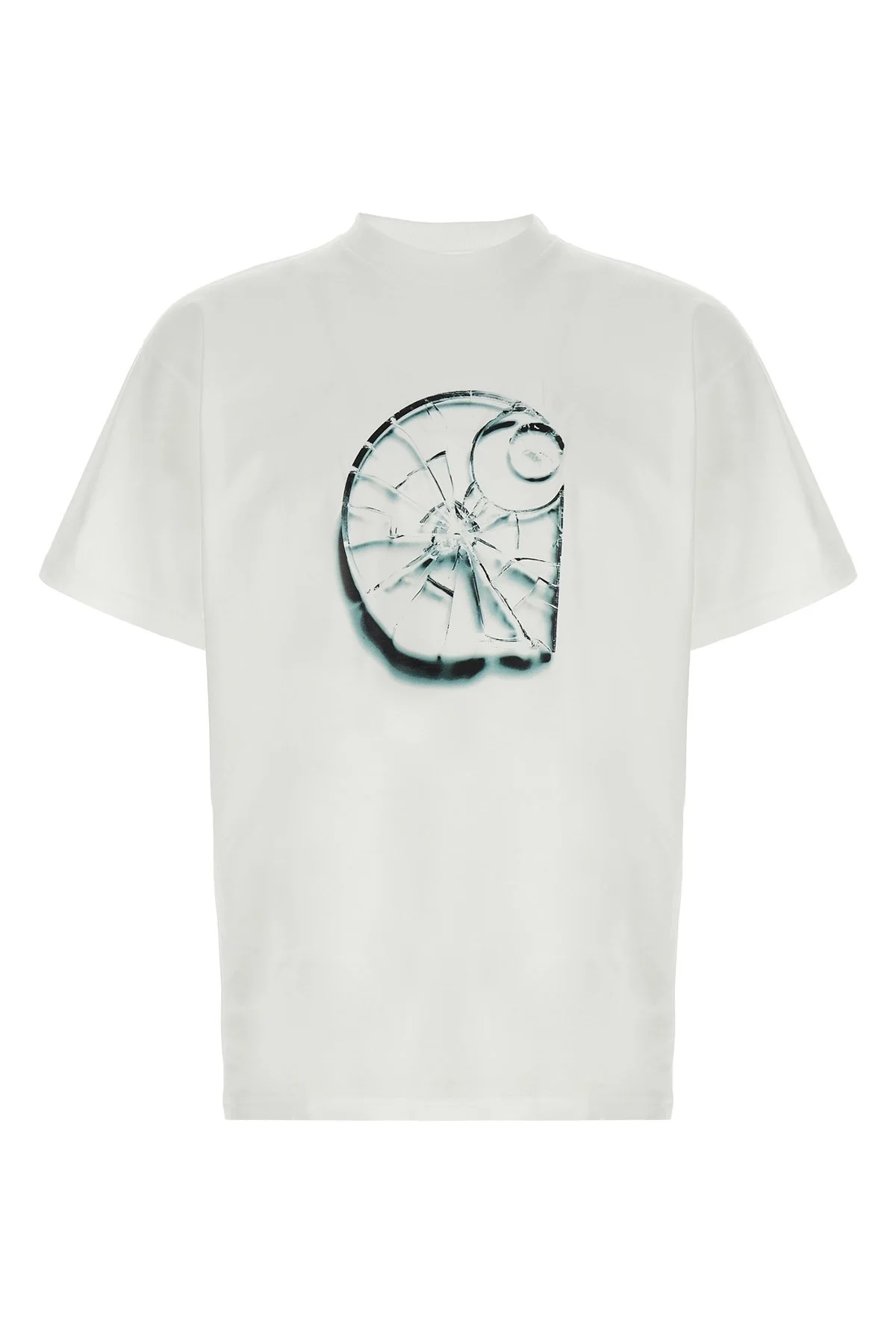 cod. I03601602XX 'Shattered' T-shirt in cotton jersey of medium weight, front print, crew neck, short sleeves. SUSTAINABLE: This product is made of organic cotton. Color: White Size & Fit: Comfort fit Composition: 100% organic cotton Made in: Bulgaria PROMO CODE NOT APPLICABLE