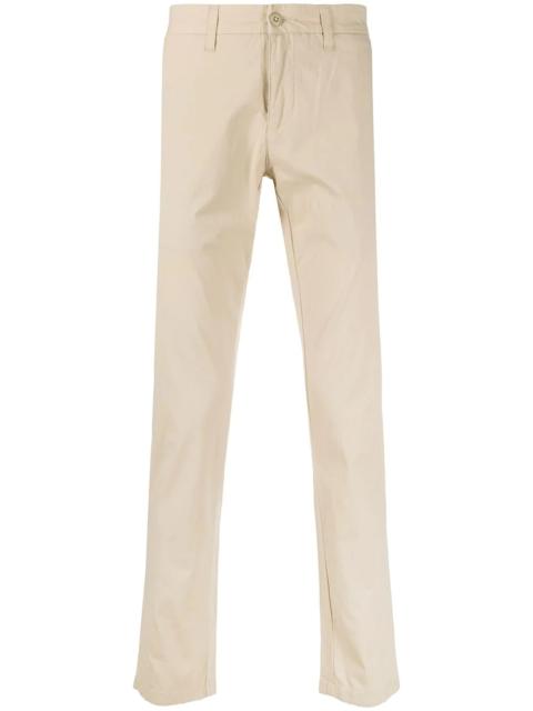 Sid trousers Highlights - Navy blue - Concealed fly and button fastening - Two side slash pockets - Two rear button-fastening jetted pockets - Belt loops Imported Composition Lining: Polyester 65%, Cotton 35% Outer: Cotton 98%, Spandex/Elastane 2% SIZE & FIT Model measurements Height 6 ft 1 in(1.85 m) Bust/Chest 38.58 in(98 cm) Hips 37 in(94 cm) Waist 30.31 in(77 cm) FittingInformation Designed for a slim fit, offering a comfortable fit that sits just away from the leg Made from a midweight stretch fabric, this piece offers elasticity and flexibility when worn