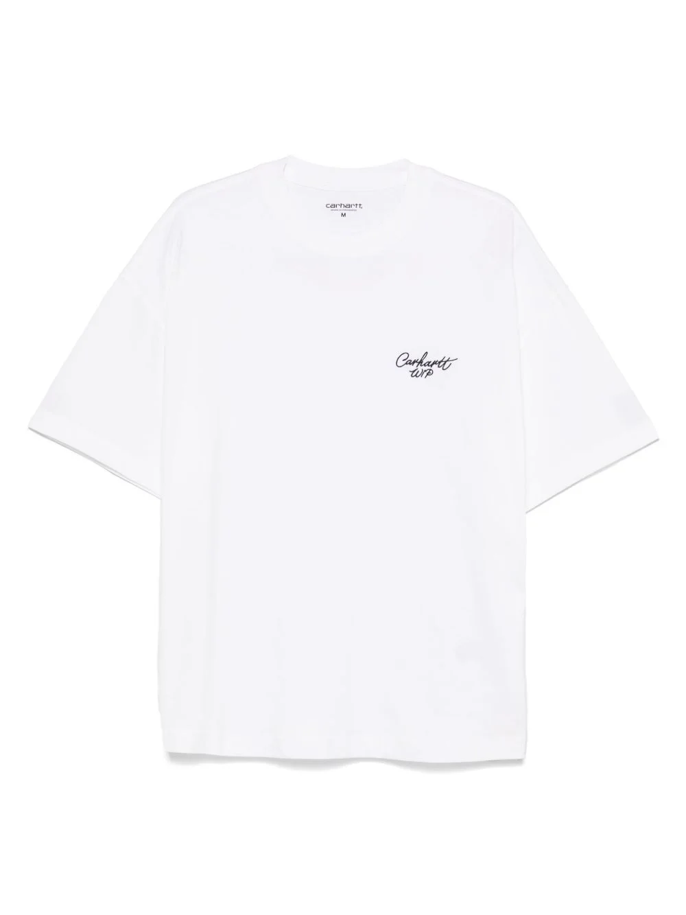 Signature Script T-shirt Highlights - White - Embroidered logo at the chest - Crew neck - Short sleeves Imported Composition Organic Cotton 100% SIZE & FIT FittingInformation Designed for a relaxed fit, this piece allows for comfort and movement when worn Made from a midweight non-stretch fabric, this piece offers minimal elasticity when worn
