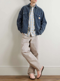 Like many of Carhartt WIP's designs, these 'Single Knee' trousers are modelled on classic workwear. They're cut for a straight-leg fit from the brand's 'Dearborn' cotton-canvas and feature bartack stitching to enhance durability. Size & Fit - Fits true to size, however those who are between sizes should take the smaller size - Wide leg, low-crotch style - Mid-weight, non-stretchy fabric - Model is shown wearing a 30 - Model measures: waist size 30, height 6'1"/ 185cm Details & Care - Beige cotton-canvas - Button and zip fastening - 100% cotton - Machine wash - Designer colour: Dusky Beige