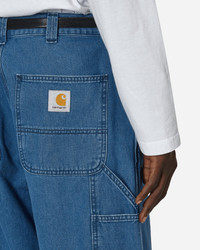 Carhartt WIP Single Knee Pants Blue The Single Knee Pant draws inspiration from classic work pant silhouettes. It is cut in a relaxed straight fit with a regular waist. Triple-stitched details make the pant more robust, while tool pockets and a hammer loop offer further nods to the item's utilitarian influences. - 100% Cotton - Relaxed Straight Fit - Bartack Stitching at Vital Stress Points - Button Closure - Zip-Fly - 7-Pocket Design - Hammer Loop - Woven Logo Patch - Style Code: I033338 0160 SIZE & FIT Measures (Size 32) 42cm Waist, 30cm Rise, 108cm Outseam, 80cm Inseam, 22cm Ankle. Model is 6ft 2in/1.86m with a 26"/68cm waist and wears size 32.
