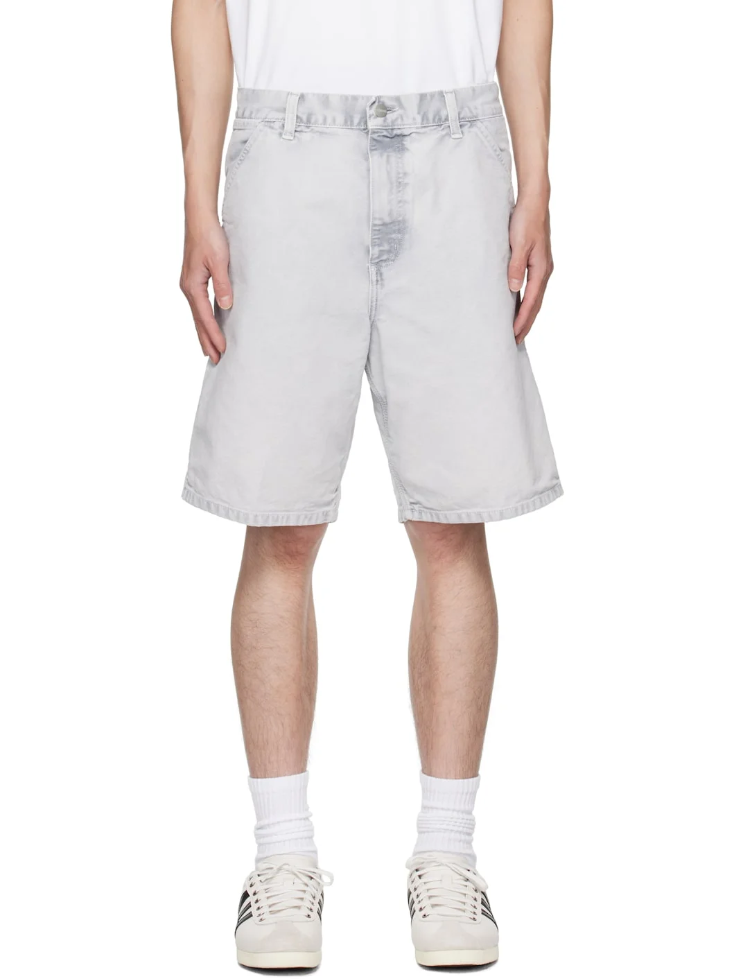 12 oz organic cotton Dearborn canvas shorts. · Belt loops · Five-pocket styling · Zip fly · Cargo pockets at outseams · Hammer loop at outseam · Logo patch at back pocket Supplier color: Black/Chalk wash Body: 100% organic cotton. Pocket lining: 65% polyester, 35% cotton. Made in Tunisia 252111M193021