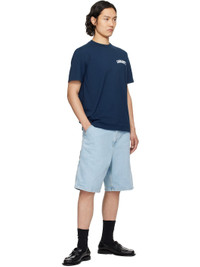 Heavyweight stone-bleached non-stretch denim shorts. Fading throughout. · Loose-fit · Belt loops · Five-pocket styling · Zip fly · Hammer loop at outseam · Patch pockets at outseams · Logo patch at back pocket · Contrast stitching in tan Supplier color: Blue (heavy stone bleached) Body: 100% cotton. Lining: 65% polyester, 35% cotton. Made in Tunisia 251111M193056