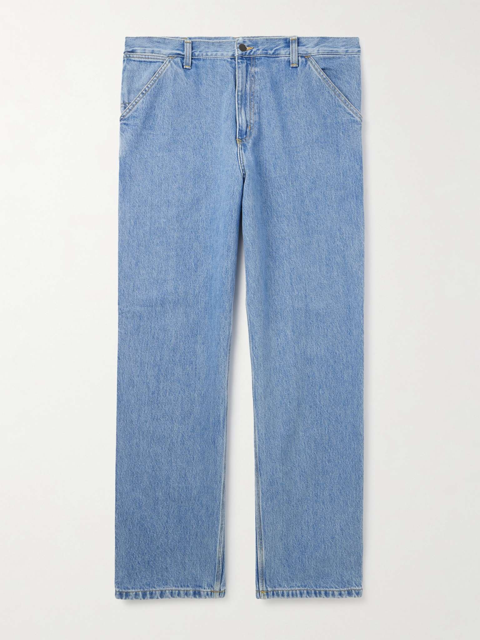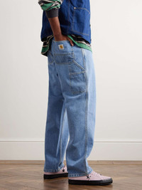 Carhartt WIP's 'Single Knee' jeans are inspired by classic workwear. They're cut for a straight-leg fit from stonewashed denim and finished with key details like a hammer loop and utility-style pockets. Size & Fit - Fits true to size. Take your normal size - Relaxed-straight leg, low-crotch style - Mid-weight, non-stretchy fabric - Model is shown wearing a 32 - Model measures: waist size 32, height 6'0"/ 183cm Details & Care - Blue denim - Button and zip fastening - 100% cotton - Machine wash