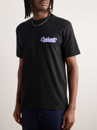 Carhartt WIP's slogan is a reminder that it's okay to be a 'Work in Progress', as noted on the back of this T-shirt. Cut from 175gsm cotton-jersey, it's printed with a logo on the chest. Size & Fit - Fits true to size. Take your normal size - Designed for a regular fit - Lightweight, stretchy fabric - Model is shown wearing a M - Model measures: chest 38"/ 96cm, height 6'0"/ 183cm Details & Care - Black, blue and purple cotton-jersey - 100% cotton - Machine wash