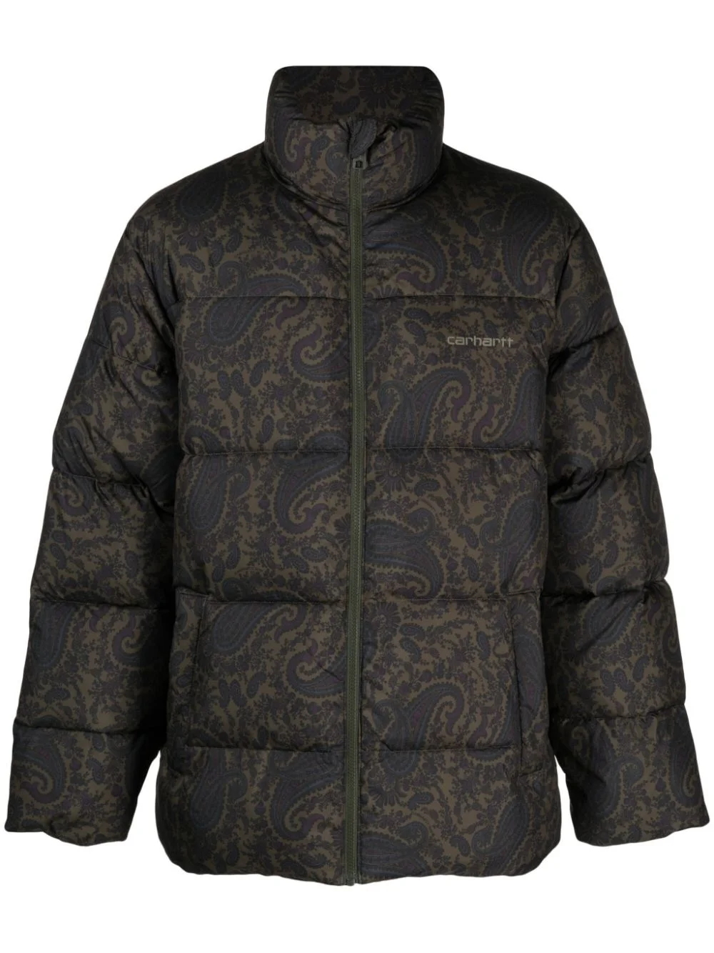 Springfield paisley-print puff jacket Highlights - Olive green/black - Recycled polyester - Water-repellent finish - Padded design - Quilted - Paisley print - Logo print at the chest - Funnel neck - Front zip fastening - Long sleeves - Elasticated cuffs - Two front welt pockets - Drawstring hem - Full lining Imported Composition Outer: Recycled Polyester 100% Lining: Polyester 100% SIZE & FIT Model measurements Height 6 ft 2 in(1.88 m) Bust/Chest 36.61 in(93 cm) Hips 35.82 in(91 cm) Waist 27.95 in(71 cm) FittingInformation Designed for a relaxed fit, this piece allows for comfort and movement when worn The adjustable drawstring means that you can adjust this piece’s fit to suit your comfort and preference Made from a padded non-stretch fabric, giving it no natural elasticity This piece fits true to size – take your usual size Washing instructions Machine Wash