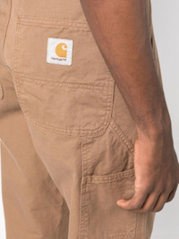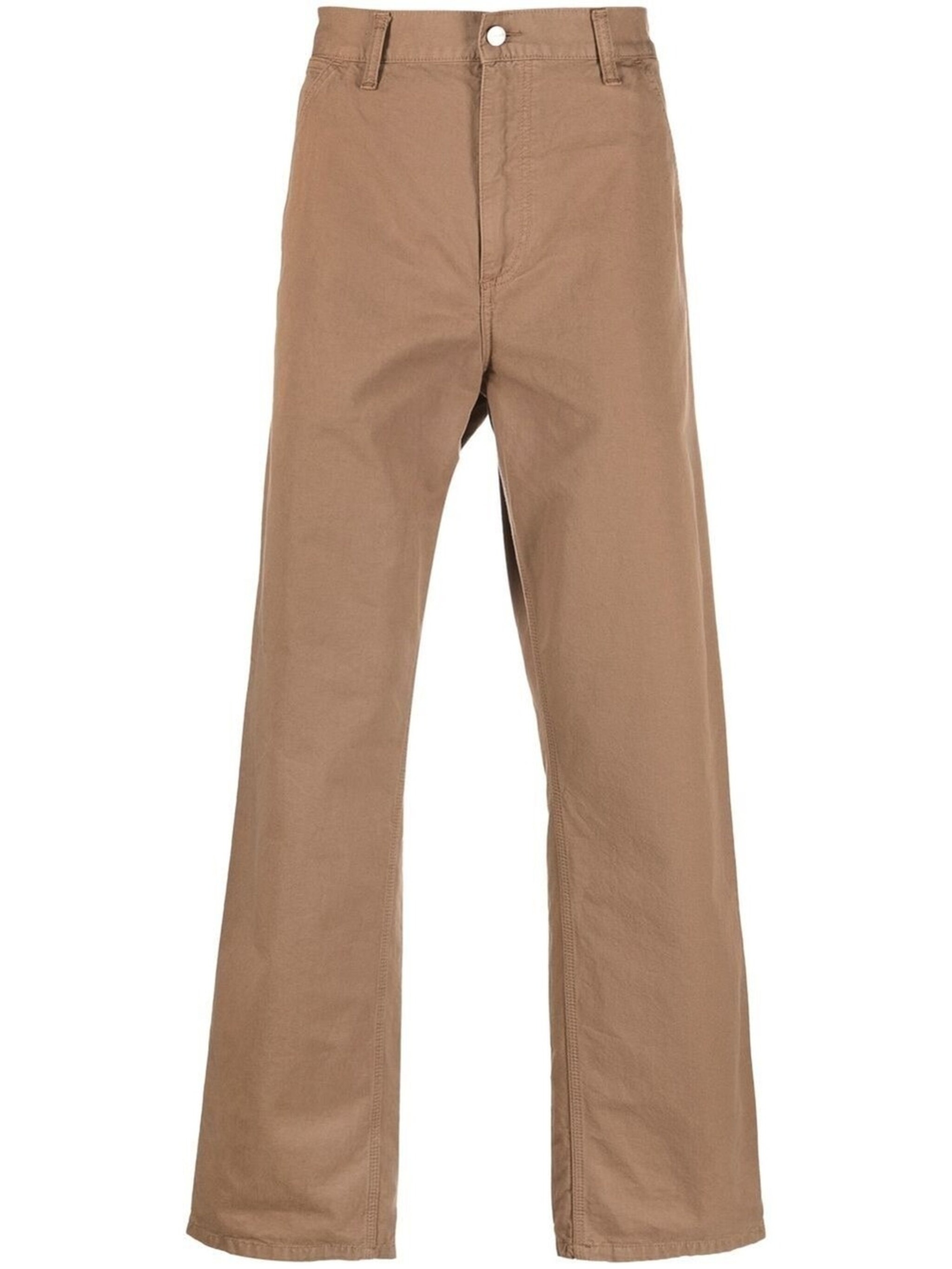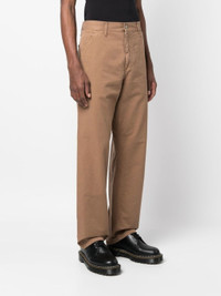 mid-rise straight-leg jeans from CARHARTT WIP featuring camel brown, cotton, logo patch to the rear, tonal stitching, mid-rise, belt loops, front button and zip fastening, two side inset pockets, two rear patch pockets, straight leg and ankle-length. Size & Fit Model Measurements: Height: 1.73 m Bust/Chest: 84.0 cm Hips: 89.0 cm Waist: 63.0 cm Model wears size 32 Fabric and Care Designer Style ID: I031499 Designer Colour: BUFFALO GARMENT Composition: Cotton 100% Washing instructions: Machine Wash Made in Tunisia