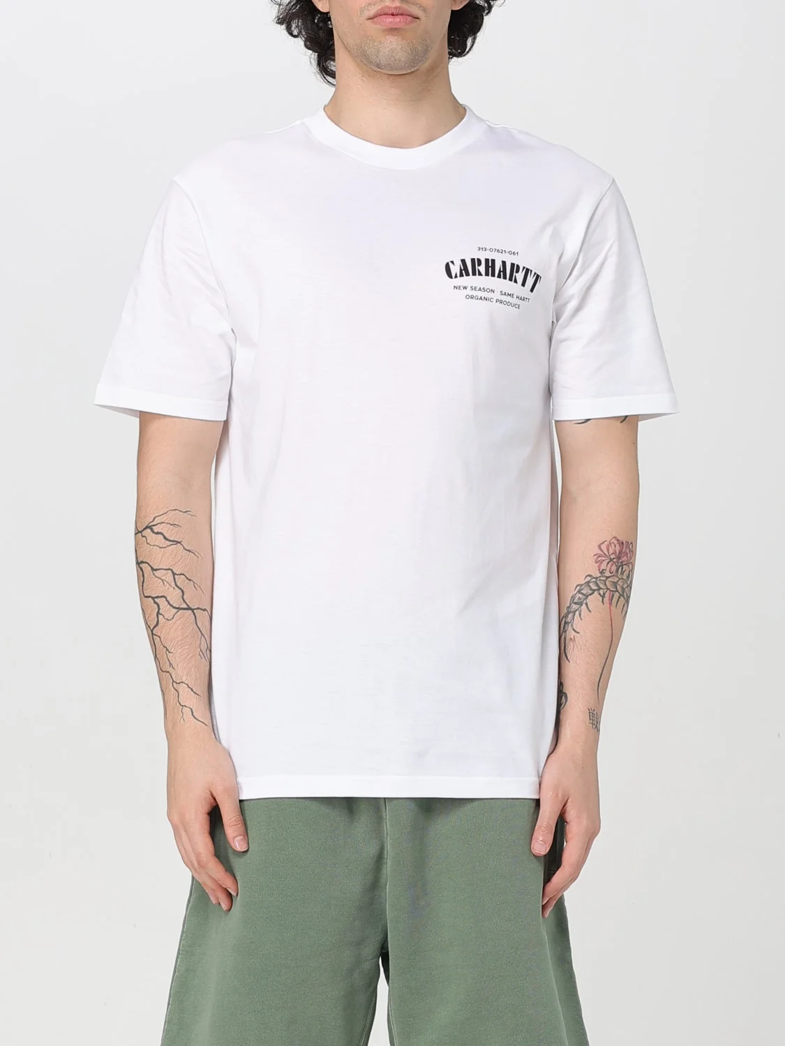 DESCRIPTION - Style: Pop - Logo: Print - Model: Crewneck - Neckline: Crewneck - Shoulders: Regular - Sleeves: Short - Bottom: With straight hemline - Materials: Cotton - Pattern: Graphic DETAILS AND CARE Composition 100% Organic Cotton Single Jersey, 175 g SIZE AND FIT Sizes not available Size and fit Regular fit Designer code: I034761 02XX Giglio Code: 421093 Designer: Carhartt Wip Collection: Carhartt Wip Men Category: Clothing Carhartt Wip
