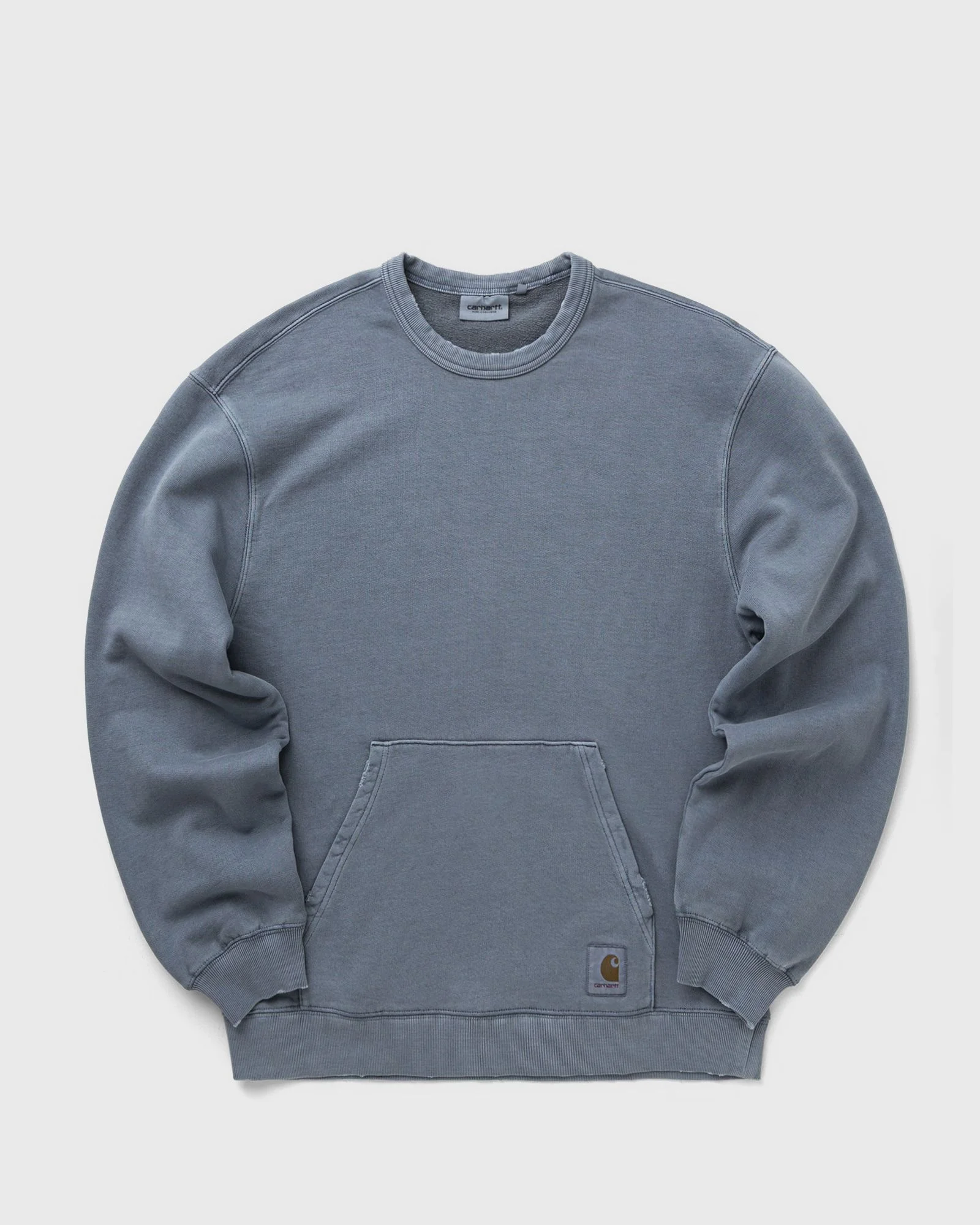 The Torion Sweatshirt by Carhartt WIP is made from heavy cotton fabric with an unbrushed loopback construction. The style has a balloon fit that is slightly wider and boxy, featuring dropped shoulders and ribbed cuffs. A grind wash gives the sweatshirt a slightly aged, worn-in finish. An overdyed square label completes the design. - Crew neck - Ribbed cuffs and hem - Kangaroo pocket Article number: I036054-3GB.B7 Gender: men Color: OFFICE BLUE Material: Full: 100% Cotton