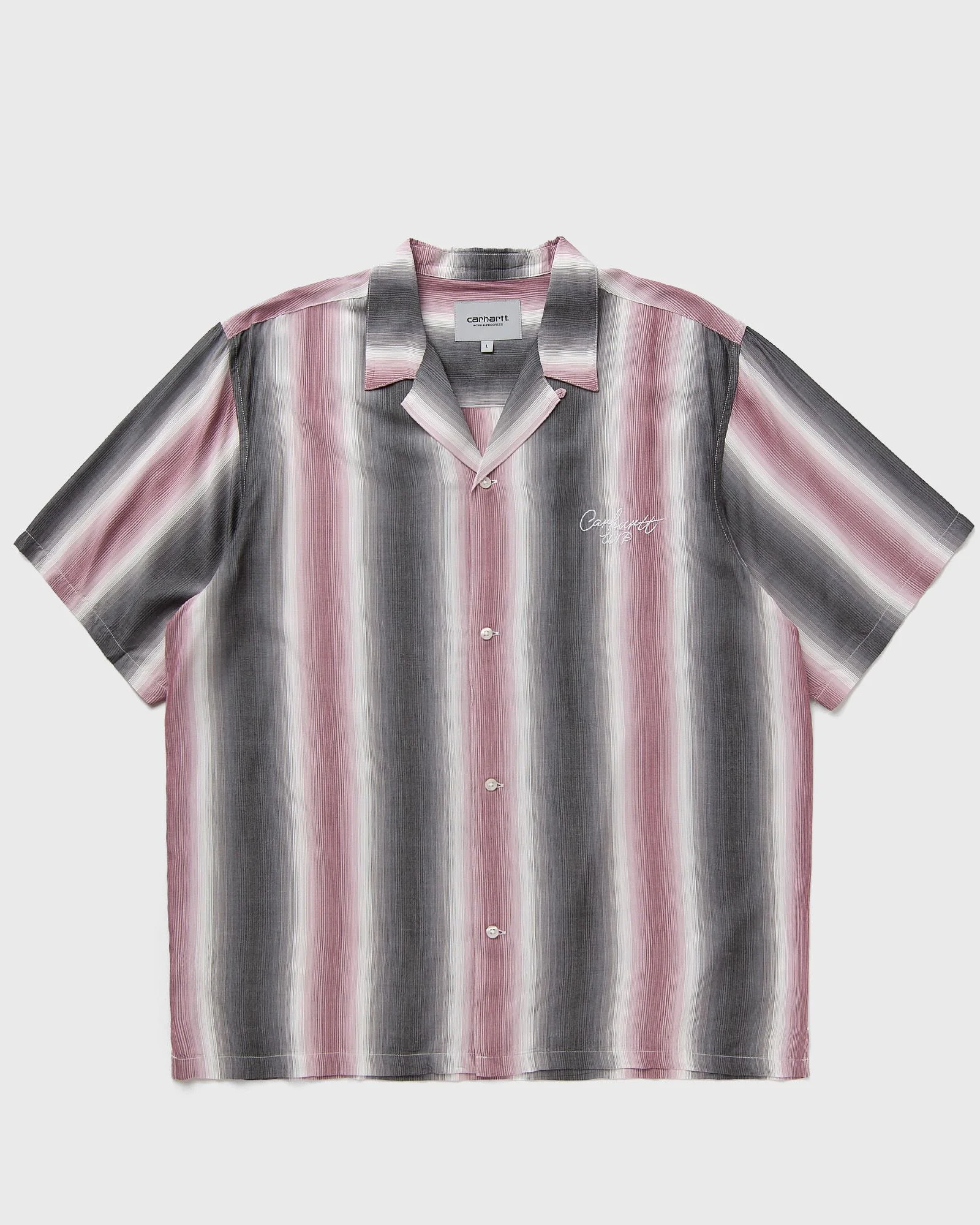The Carhartt WIP S/S Dashner Shirt is made from a lightweight, striped viscose poplin. The style fastens with buttons and features a camp collar. An embroidered logo on the left chest rounds off the design. - Loose fit - Short sleeves - Piece washed - Yarn dyed - Embroidered logo Article number: I034540-2UT.XX Gender: men Color: DASHNER STRIPE, GRAPHITE / WHITE Material: 100% Viscose
