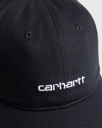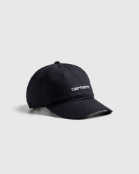The Script Cap is a Carhartt staple. A no-frills design, this unstructured and unlined six panel hat is made from 100% cotton canvas and is garment-washed to enhance comfort and prevent the loss of shape. It arrives embellished with logo embroidery at the front as well as a branded metal buckle at the back strap. Size & Fit Adjustable. Product Details 100% cotton canvas, 7.7oz Garment-washed Unstructured Unlined Six panel Top button Embroidered eyelets for breathability Curved brim Adjustable back strap with a branded metal buckle Script embroidery at the front