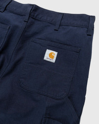 The Double Knee Pant is generally featured heavily in Carhartt’s seasonal collections, offered here in a classic navy colorway for the new season. The brand utilizes its signature organic cotton dearborn canvas on the pair, which is triple stitched at vital stress points as a nod to prototypical workwear styles. Utilitarian details include tool pockets and a hammer loop, making the Double Knee Pant perfect for work and play. The pair is set off by the double layer at the knee in a tonal application. Size & Fit Relaxed straight fit. The waist runs large so order one size down from your normal size. Product Details 100% organic cotton dearborn canvas. 12 oz. Triple stitched. Bartack stitching at vital stress points. Double layer at the knee. Tool pockets and hammer loop. Zip fly. Square Carhartt WIP label.