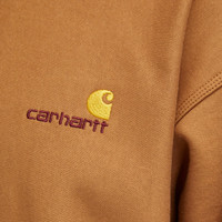 Carhartt WIP, clothing Michigan's workers since 1889, now redefines rugged American workwear for both on and off the clock. The American Script hoodie, made from a comfortable cotton blend, delivers the durability necessary for your city adventures. Cut loosely from jersey and brushed at the back for additional softness, it includes contrasting side panels for extra depth. - 80% Cotton, 20% Polyester - Brushed Back Jersey - Loose Fit - Drawstring Hood - Kangaroo Pocket - Contrast Side Panels - Ribbed Cuffs & Hem - Embroidered Branding