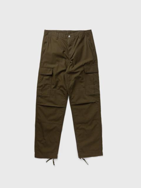 The Regular Cargo Pant from Carhartt WIP is made from a medium-weight Columbia cotton ripstop with a rinsed finish for a softer feel. The regular-cut style with a low waistband is particularly hard-wearing thanks to double-layer knee sections. Several patch pockets give the trousers a casual military look and the fit can also be varied thanks to a tie detail at the cuffs. - Regular fit - Low waist - Zip fly - Square label Article number: I032467-8Y.02 Gender: men Color: Leather rinsed Material: 100% Cotton