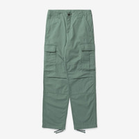 A Carhartt WIP classic - the Regular Cargo Pant. Made of midweight cotton Columbia ripstop with a regular fit and low waist, featuring zip fly, tie detailing at the cuffs and double-layer knees. Multiple pockets, with the classic woven Carhartt WIP label on the right side pocket. - Carhartt WIP Regular Cargo Pant - Duck green - 100% cotton (Columbia Ripstop) - Regular fit, low waist - Zip fly - Square Label Article no. I032467.29N02 Gender: UNISEX Color: Duck Green