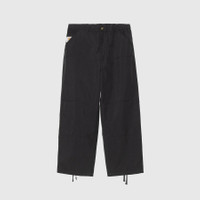 - A242056_89_XX - Black - 100% Nylon - Mid-weight nylon canvas - Front button and zipper closure - Elastic waist - Two side welted pockets - One back patch pocket - Tonal stitch outlines throughout - Adjustable drawstring cuffs - Woven label at the front and back - Relaxed fit