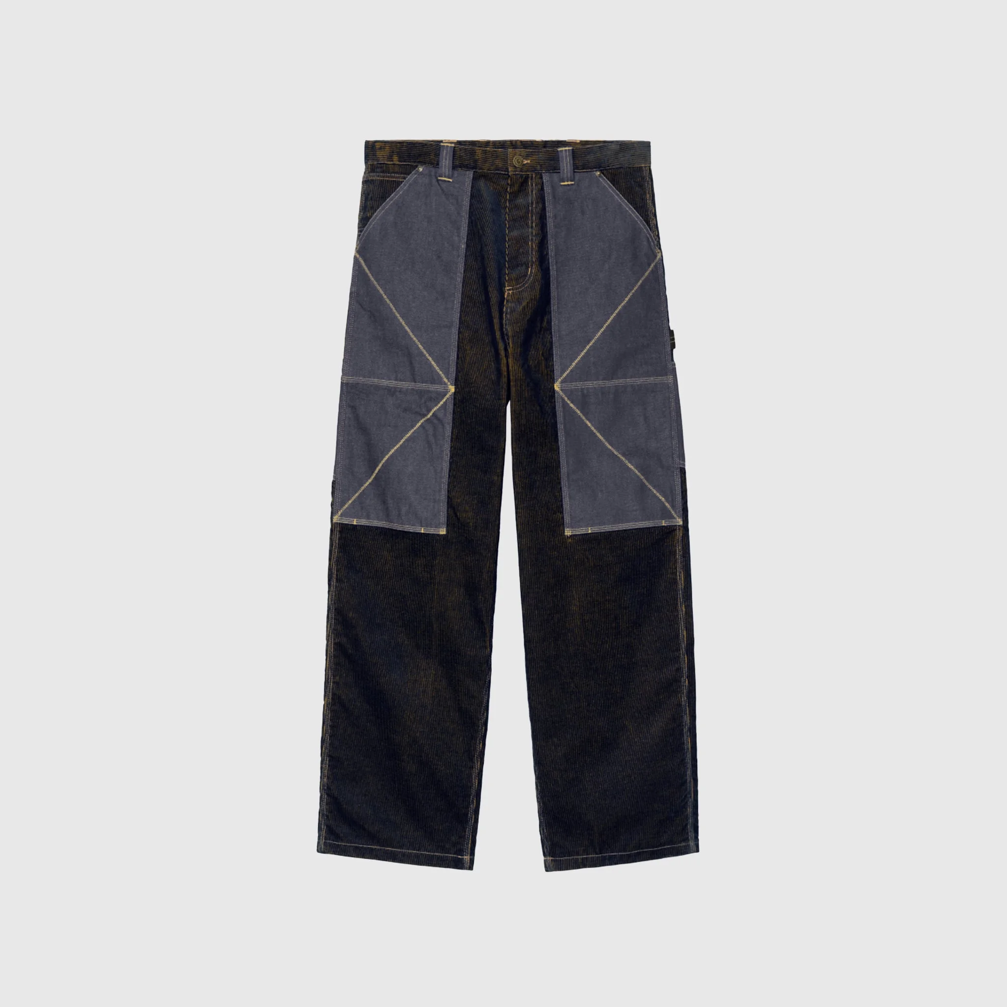 - I034882-2TXXX - ND Dark Navy/Mustard - Carhartt WIP collaborates with designer Nicholas Daley on a project rooted in his core values of community, craftsmanship, and culture, blending Carhartt’s utilitarian DNA with Daley’s Jamaican and Scottish heritage. - 53% Polyester, 47% Cotton - Corduroy - Front button and zipper closure - Two front patch pockets - Two back patch pockets - Tool pockets and hammer loop - Bartack stitching at vital stress points - Double-layered knees - Contrast stitching - Co-branded woven label - Loose, straight fit
