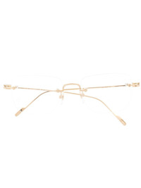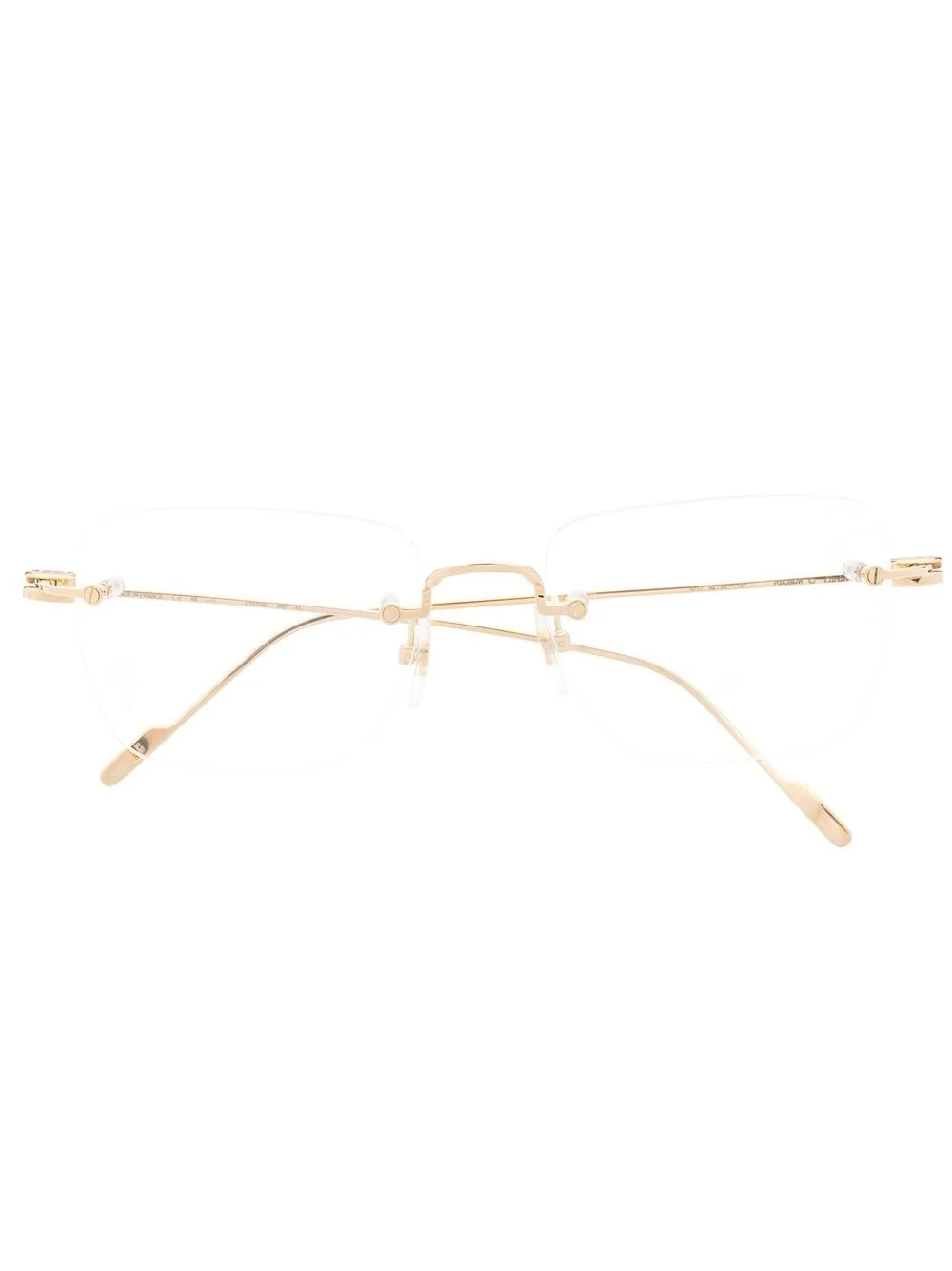 18kt gold Double C Decor square optical glasses Inspired by Cartier's iconic Double C, these square-frame glasses are crafted from 18kt yellow gold and adorned with signature logo plaque hinges. The rimless pair can be fitted with prescription or protective lenses. Made in France Composition 18kt Gold 100% SIZE & FIT Measurement Arm Length 55.11 in(140 cm) Bridge Width 7.48 in(19 cm) Lens Diameter 20.47 in(52 cm) Total Width 59.05 in(150 cm)
