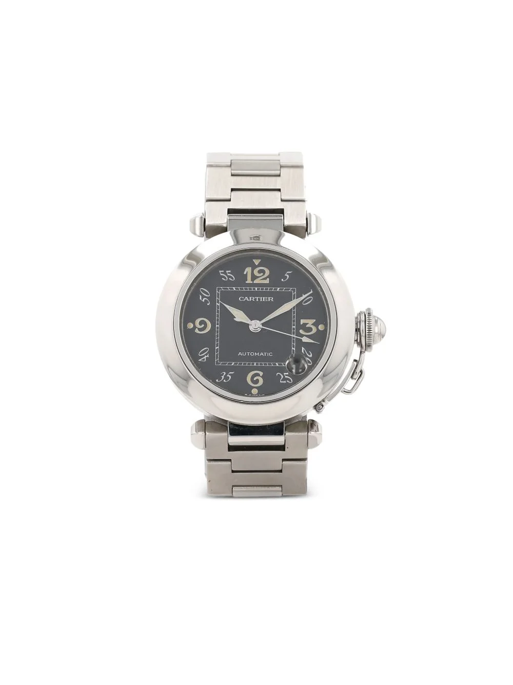 2000 Pasha 38mm Highlights - 2000 - Black dial - Round case - Stainless steel bracelet - Railroad minuterie dial - Arabic numerals luminescent markers - Automatic movement - Screwed crown protection - This item comes with a standard one-year warranty from the boutique. Made in France Composition Steel 100% SIZE & FIT Measurement Case size 1.49 in(38 mm) Maximum strap length 6.88 in(17.5 cm)